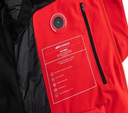 在实验中,由模特穿着安踏冠军滑雪服,站在-20℃的环境中待着10分钟,滑雪服内置的温度计显示温度变化并不大,服装内微环境的温度最终保持在26-28℃。