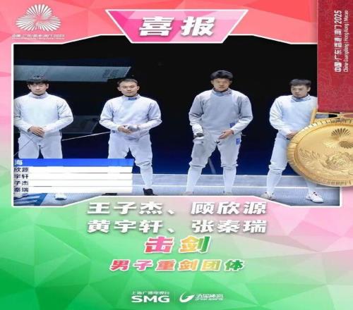 第十五届全运会,男子重剑团体金牌赛,由王子杰、顾欣源、黄宇轩和张秦瑞组成的上海队以45比43战胜山东队,收获一枚沉甸甸的金牌!