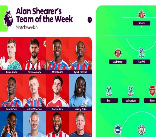 英超官方发布了阿兰-希勒评选的英超第6轮最佳阵容,哈兰德领衔,维尔贝克、格伊、赖斯在列。阿兰-希勒评英超第6轮最佳阵容门将:罗埃夫斯(桑德兰)后卫:阿尔德雷特(桑德兰)、格伊(